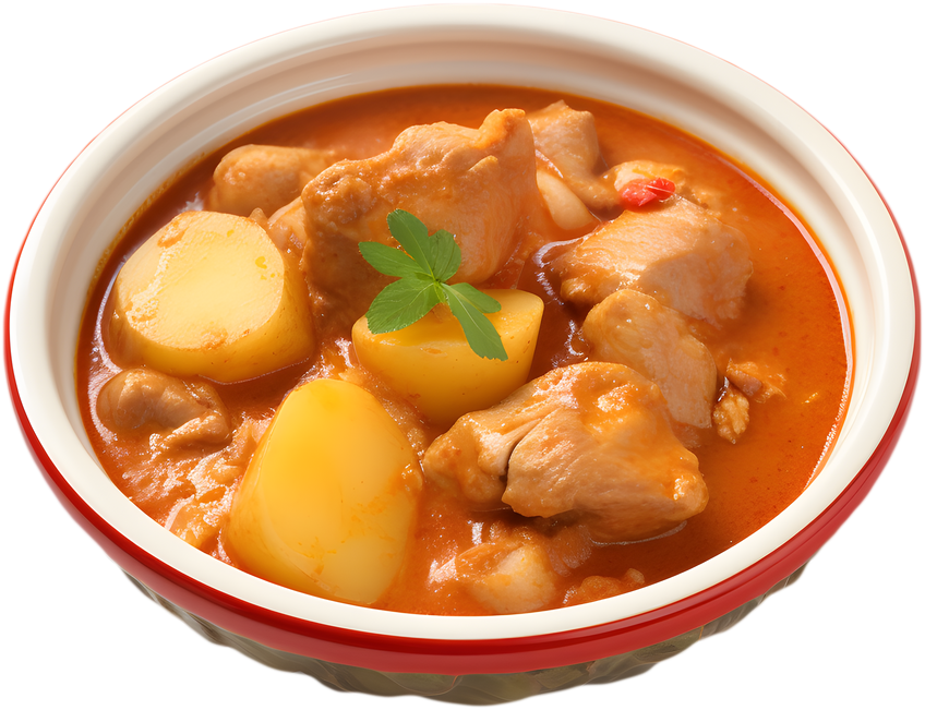 Rich and mildly spiced Thai Massaman curry withtender chicken,potatoes, Onions and